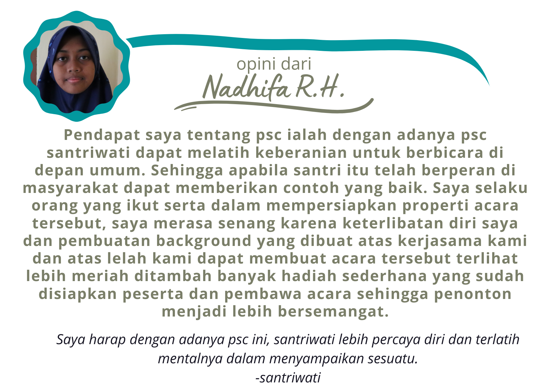 Ditengah- tengah pembuatan background, adanya informasi mengenai pengunduran agenda psc ini, karena waktu psc ini sama seperti santriwan yang sudah menentukan waktu psc terlebih dahulu, kemudian kami memilih untuk mengundurkan acara kami menjadi 1 pekan kemudian, tapi kami mengambil dari sisi positifnya saja, agar kami bisa lebih lama untuk menyiapkan dekorasi acara psc.